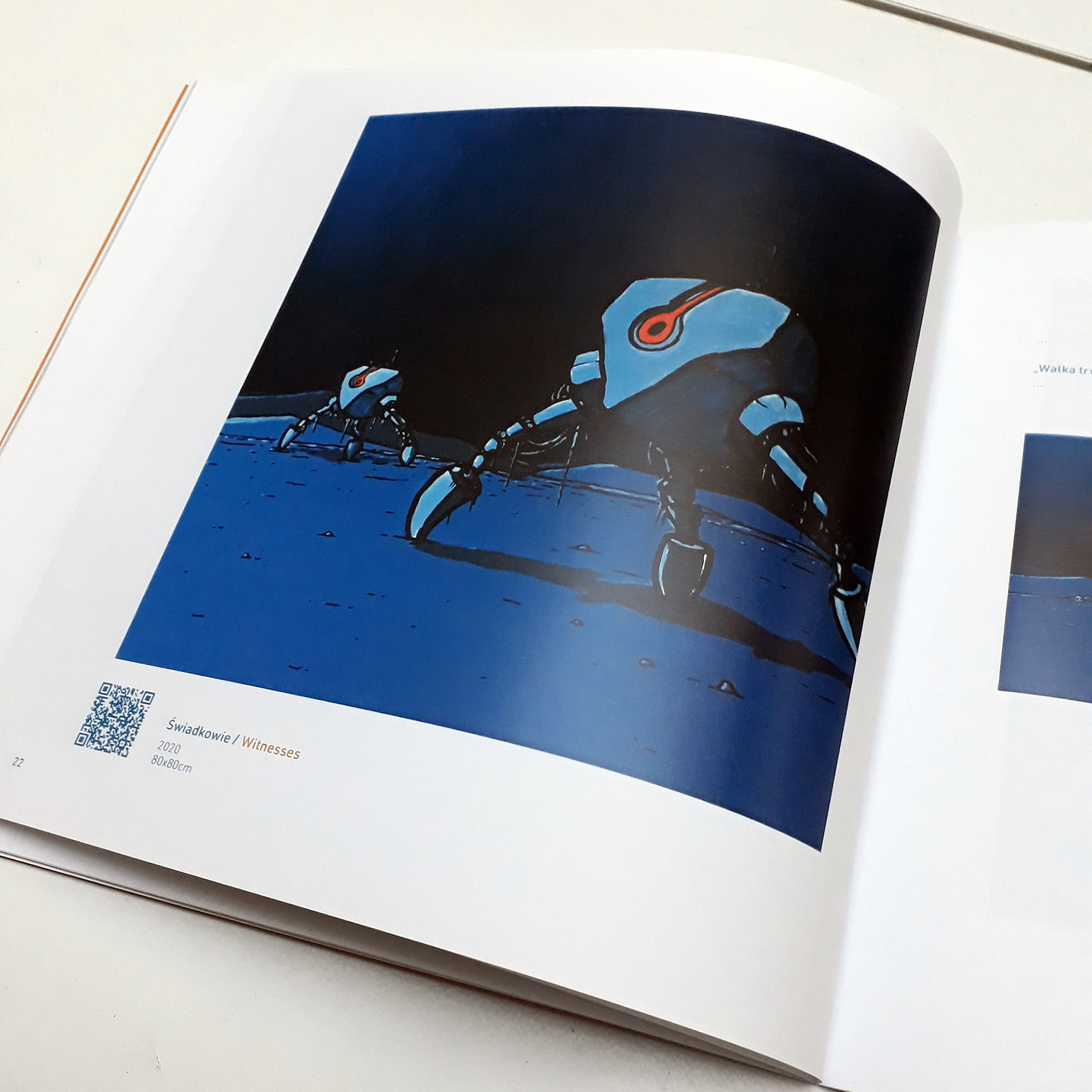 The exhibition consists of 20 paintings, made in the acrylic on canvas technique. Each painting has a QR code placed on its description plate. After scanning the code, an audio file is played on the receiver’s device from the server of the Tischner European University in Cracow – a short drabble prose form, related to the painting.
